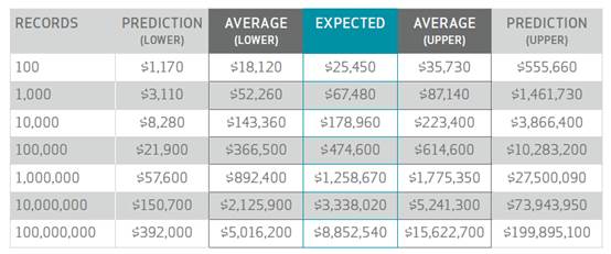 據(jù)統(tǒng)計(jì),信息安全造成的損失取決于信息泄漏的數(shù)目,與公司大小無關(guān)。報(bào)告稱一些大公司只是在數(shù)據(jù)泄漏事件中損失的信息條數(shù)比較多,因此信息泄漏的造成的損失相對(duì)較高。降低數(shù)據(jù)泄露成本應(yīng)在技術(shù)上著眼于防止泄漏記錄或盡量減少泄漏記錄的條數(shù)。