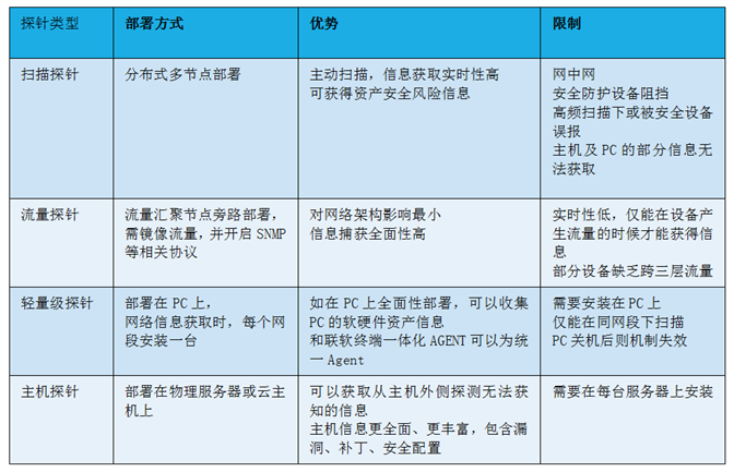 l 聯(lián)軟科技的資產(chǎn)探測包括:網(wǎng)絡掃描探針、網(wǎng)絡流量探針、主機Agent和輕量級Agent。